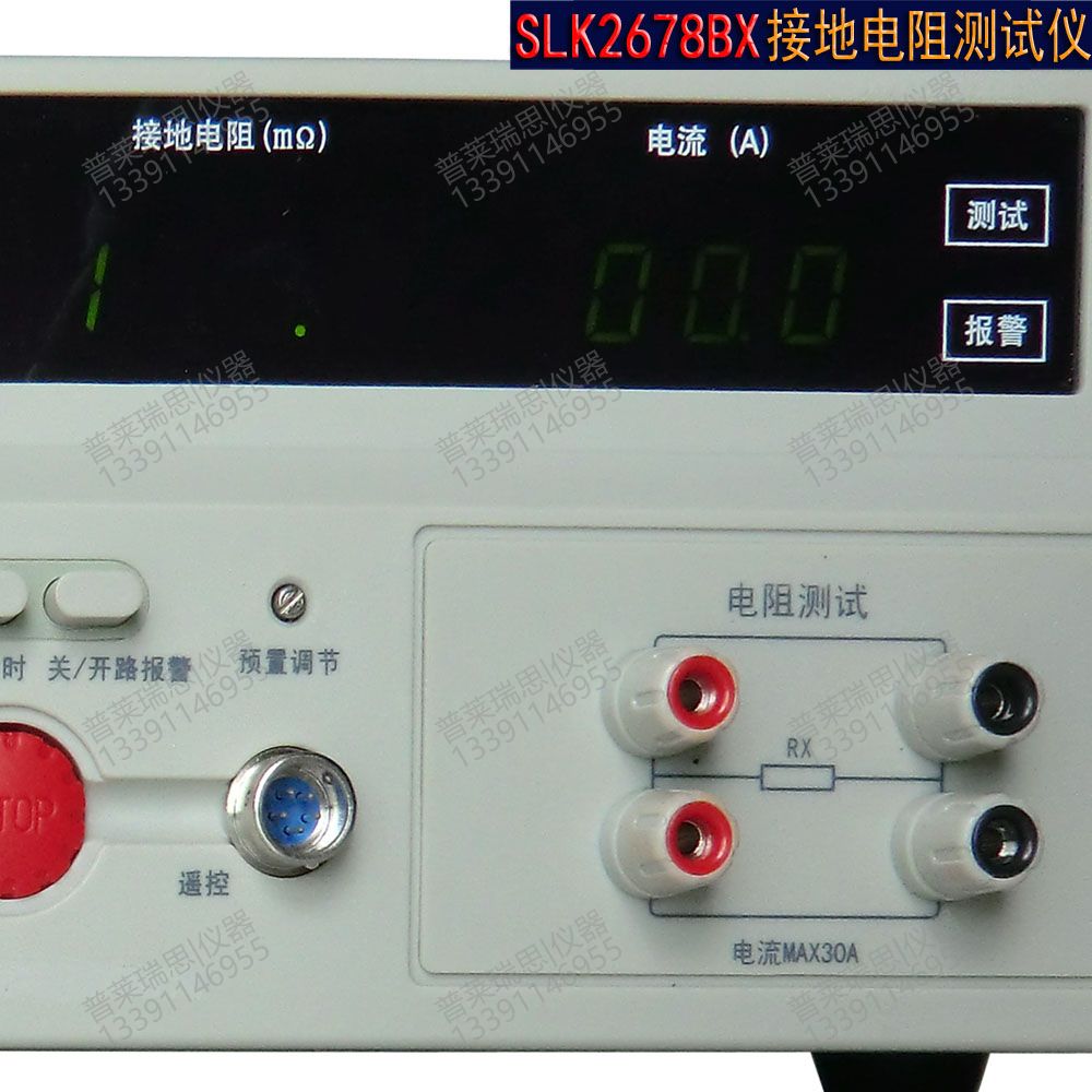 在大电流(25A或10A)的情况下对电器的外露可导部分和总接地端子接地回路的电阻及承受大电流测量,断路报警,三位半数字显示